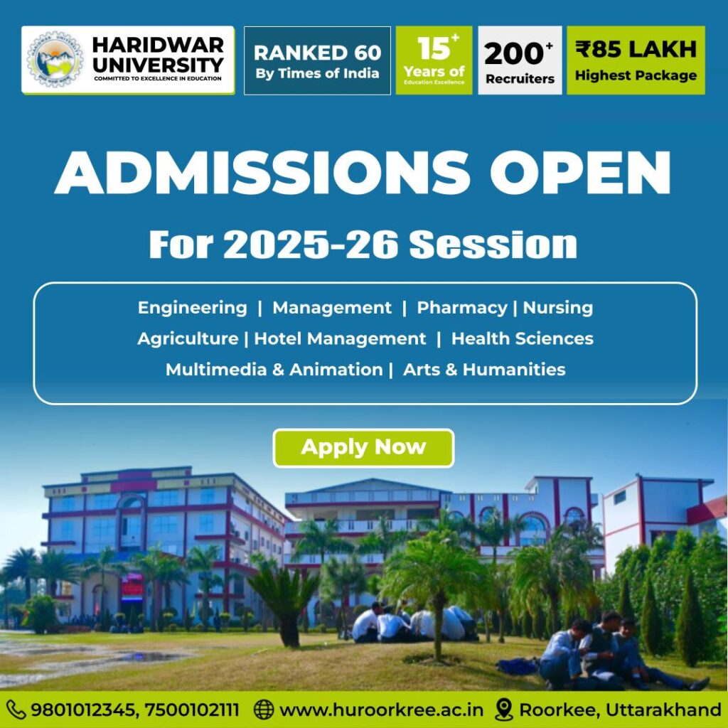 As admissions open for the academic year 2025, Haridwar University continues to uphold its legacy of excellence. With its diverse programs, modern infrastructure, and holistic approach to education, HU is the perfect choice for students seeking a transformative academic journey.