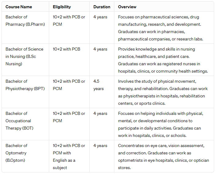 Here’s an overview of some medical courses available in India after 12th without the requirement of NEET, presented in a table format: